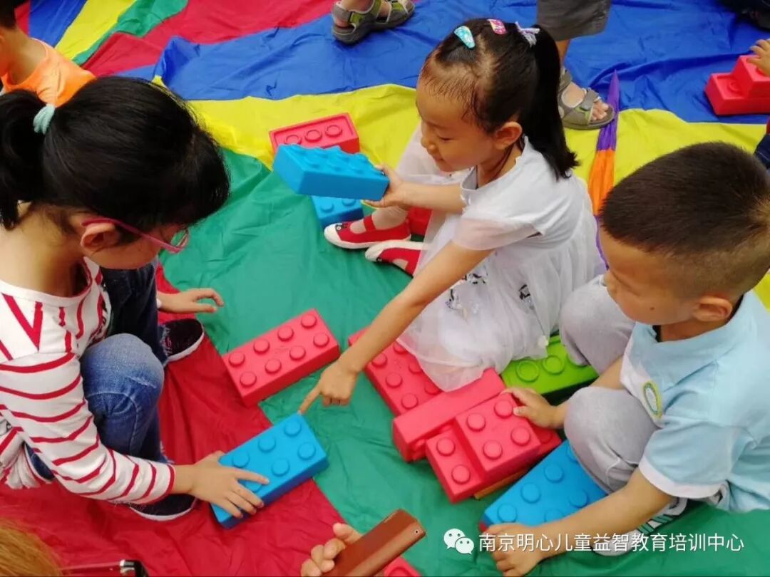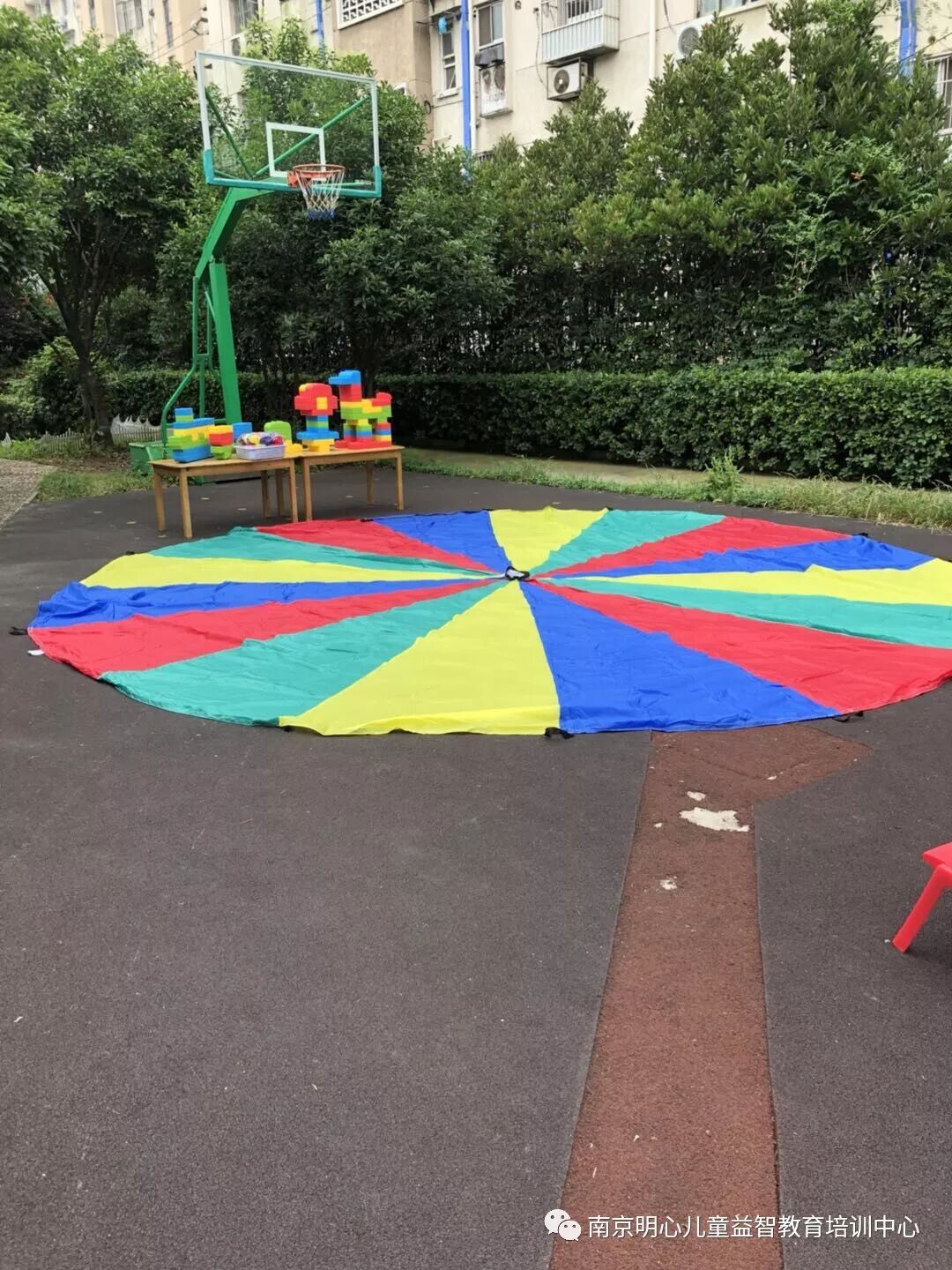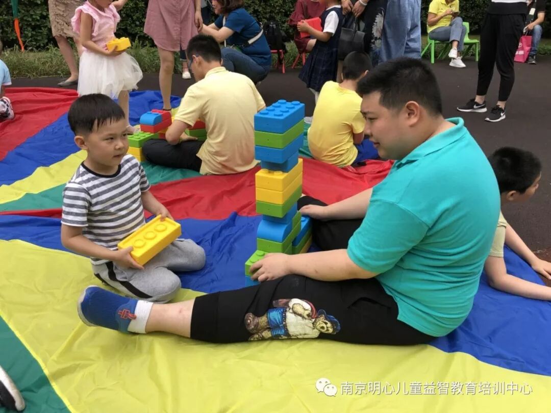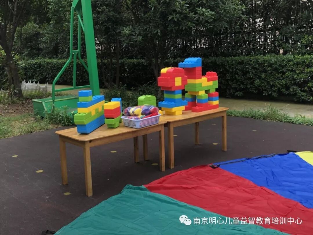 今天一早,操场上已是一片缤纷,巨大的彩虹伞、多彩的建构积木、有趣的流星球,这些精美的玩具是南京爱心帮困志愿者协会送给明心的六一礼物。