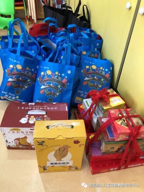 次日,江苏移动数据业务运营中心的工作人员带着自己的孩子也来到学校,在融合班和孩子们一起唱歌跳舞做游戏。并且为孩子们的春游准备了太阳帽,给学校捐赠了图书绘本。