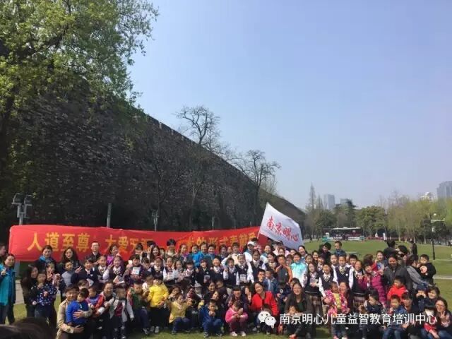 在南京明心老师的口号下,双校的孩子和家长进行了两人三足、扔沙包等团结合作的互动游戏,江苏省红十字博爱艺术团将带来的70份画笔分发给双校的孩子,近百名儿童共同在百米长布上作画“春天的梦”,活动维持了2个小时,迎来不少游园的游客驻足了解,志愿者递上红十字小报,让更多的人了解自闭症儿童的表现状况,感受红十字人道、博爱、奉献的精神。最后所有志愿者师生大合影结束这场有爱温暖的活动,寄希望让更多的人知道4月2日是世界自病症关爱日,呼吁全社会更多地关注自闭症儿童,用平等的心给予他们关爱与支持。